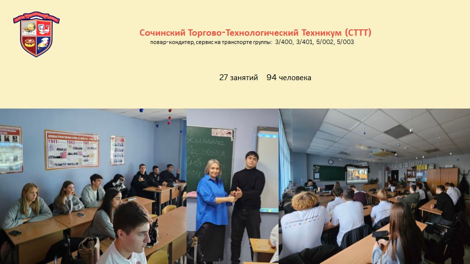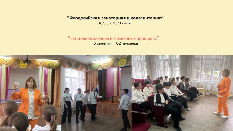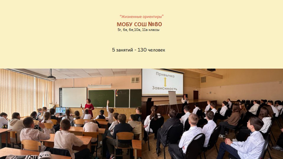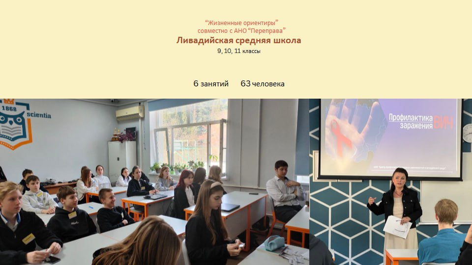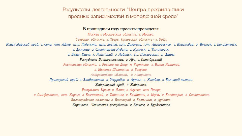 В г. Краснодаре 53 человека, в г. Ялте-18 человек, во Владивостоке- 9 человек, в Лабинске -19 человек по Программе «Жизненные ориентиры»