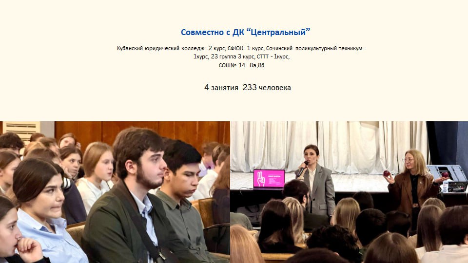 В г. Краснодаре 42 человека и в г. Керчи -28 человек по Программе «Жизненные ориентиры»
